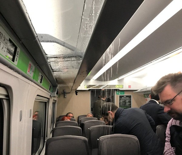 首先,由于空調問題,車廂里頭發了洪災……部分旅客無奈只能離開座位。