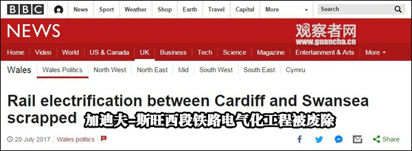 據BBC報道,7月的時候,工程將卡迪夫(威爾士首府)和斯旺西段的電氣化取消了,紀嘉林給出的理由是:按照現在的限速,不用電氣化跑完這段路用的時間也是一樣的。