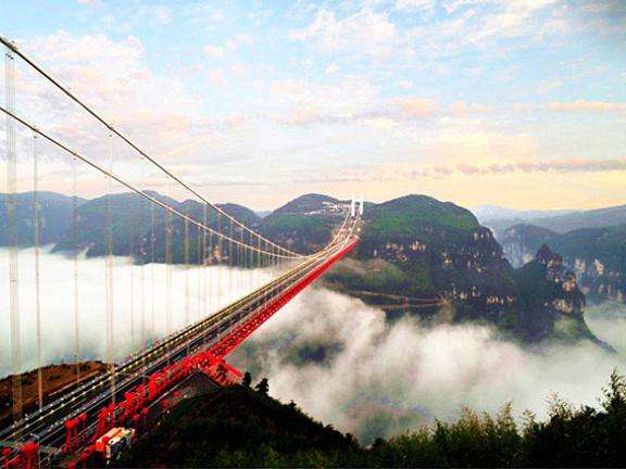 矮寨特大懸索橋位于湖南省湘西州吉首市矮寨鎮(zhèn)境內(nèi),是國(guó)家重點(diǎn)規(guī)劃的8條高速公路之一——長(zhǎng)沙至重慶通道湖南段中的重點(diǎn)工程,它創(chuàng)造了四項(xiàng)世界第一,極大地改善湘渝兩省市的交通現(xiàn)狀,對(duì)兩省市乃至中西部的對(duì)接具有極其重要的意義。
