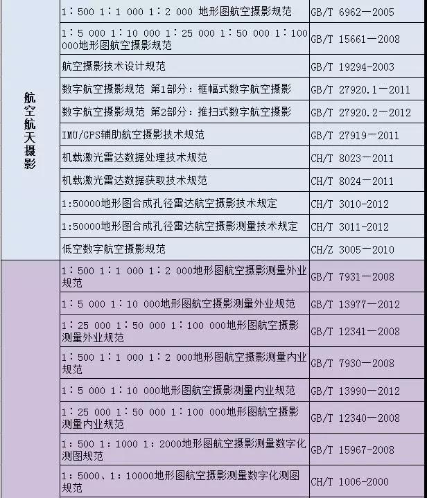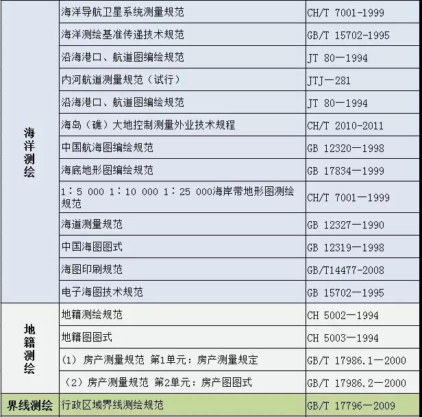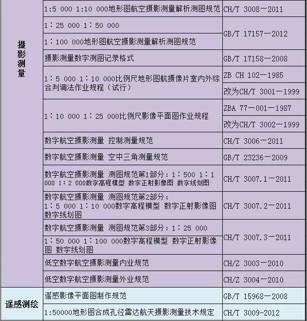 測繪專業國家及行業標準匯總