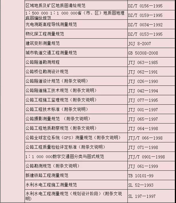 測繪專業相關標準大全