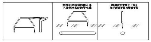 5、管線的對地泄漏電流可由“A”字架兩腳分別接收,而接收機(jī)顯示的信號大小則是兩針接收信號的差值,當(dāng)兩針接收的差值為零時,則說明“A”字架在故障點(diǎn)的正上方