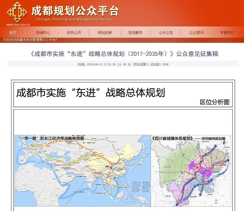 日前,成都規劃局官網公布了《<成都市實施“東進”戰略總體規劃(2017-2035年)>公眾意見征集稿》,從定位、目標、產業、生態等各方面規劃,詳細闡釋了 “ 東進 ” 到底該怎么 “ 進 ” 。