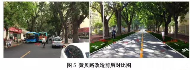 ● 黃貝路:原10 米機動車道壓縮為米,在兩側各設置1.5 米寬自行車道,解決自行車出行和地鐵接駁需要。