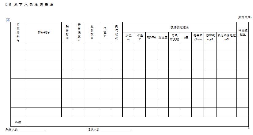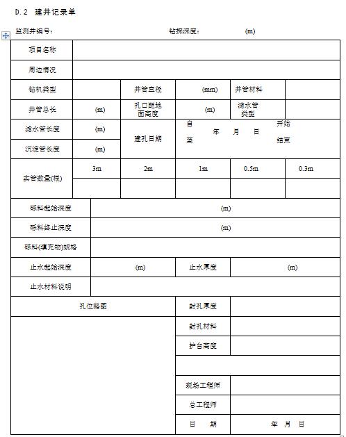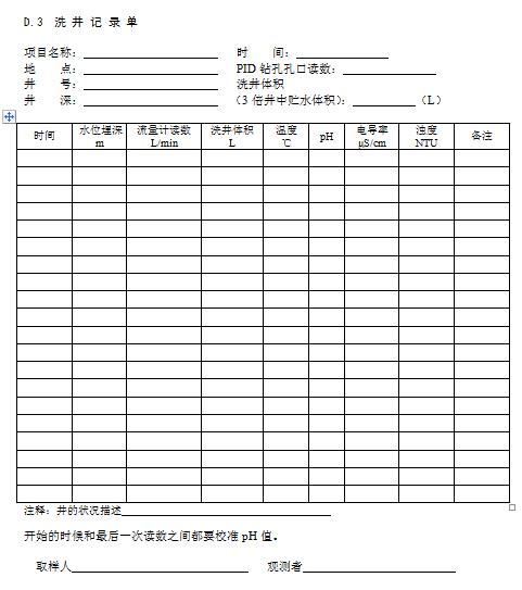 現場記錄宜使用專門的記錄單,現場記錄單包括:鉆孔記錄單、采樣日志和監測井建井記錄單、洗井記錄單和水位觀測記錄單等等。