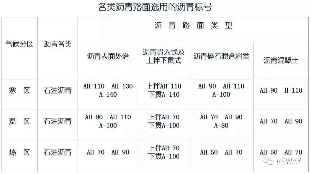 熱區選用稠度高、60℃粘度大的瀝青,寒區選用稠度低、低溫延度大的瀝青。
