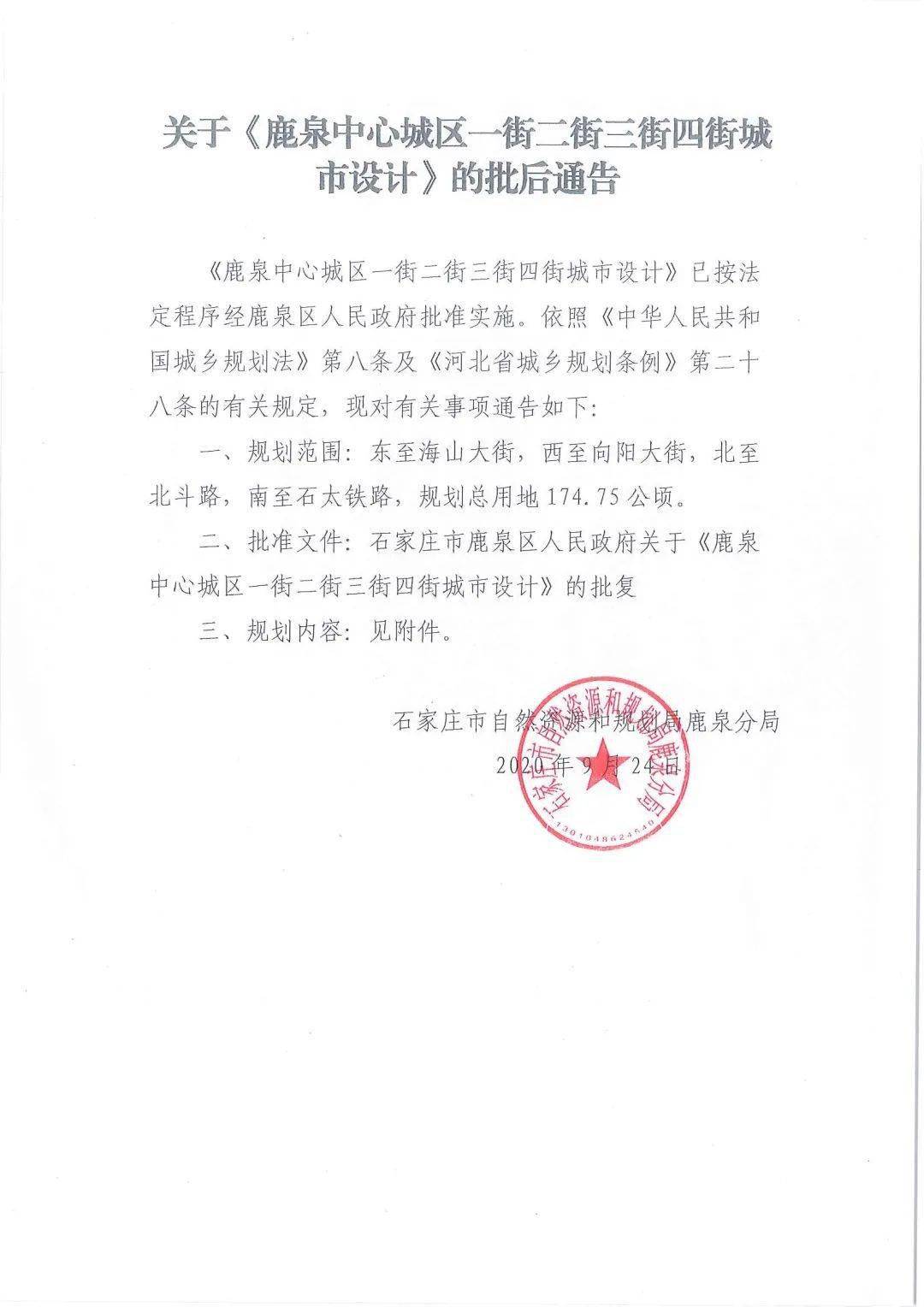 鹿泉中心城區(1-4 街)城市設計獲批!規劃總用地 2621.25 畝
