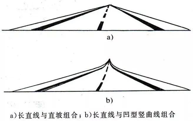 (3)下穿式立體交叉的凹型豎曲線,見圖c