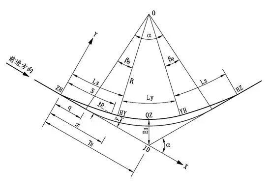 為消除行車轉彎時曲率突變,使行車能從容、順適地進行曲率變化而設置的曲線緩和過渡段為緩和曲線