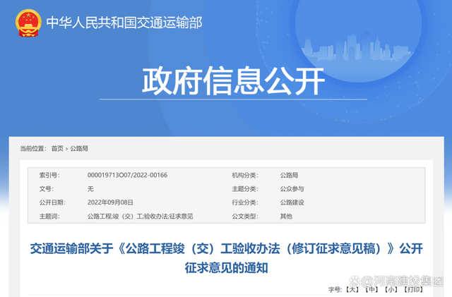 為促進公路基礎設施高質量發(fā)展,進一步規(guī)范公路工程竣(交)工驗收工作,我部對《公路工程竣(交)工驗收辦法》進行了修訂,現(xiàn)向社會公開征求意見。公眾可通過以下途徑和方式提出反饋意見: