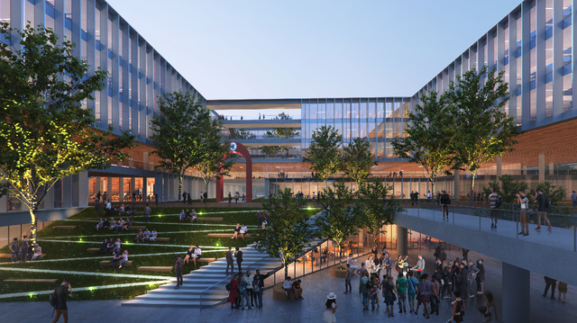 打造以學(xué)科貫通為核心的研究型校園,是北交大雄安校區(qū)規(guī)劃設(shè)計(jì)的重點(diǎn)。規(guī)劃方案設(shè)計(jì)了一條校園“學(xué)術(shù)中軸”,公共教學(xué)、實(shí)驗(yàn)、研究等功能一應(yīng)俱全,可承載三大一流學(xué)科群和兩大基礎(chǔ)學(xué)科建設(shè)。該校雄安校區(qū)還以交大校訓(xùn)和飲水思源的傳統(tǒng)為名,規(guī)劃了三大廣場(chǎng):思源、知行、天佑,打造了新明湖水系和24小時(shí)開(kāi)放書(shū)院全時(shí)交流共享空間。