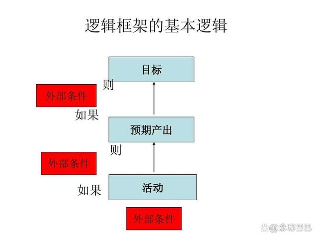 邏輯框架,說簡單點就是做項目的邏輯關系。我們做任何事情或者活動,都需要投入,如果投入活動,外部條件具備,那么就會有產出成果。如果有產出成果,那么在條件具備的情況下,那么就可以實現具體目標或者目的。如果一個個具體目標實現了,那么宏觀目標就有可能實現了。