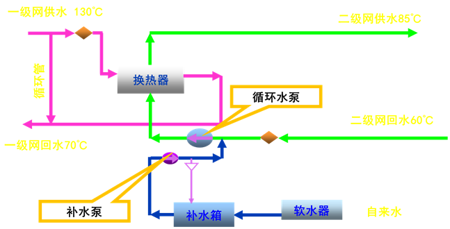 熱水網干線設分段閥門。輸送干線2~3km;輸配干線1~1.5km。