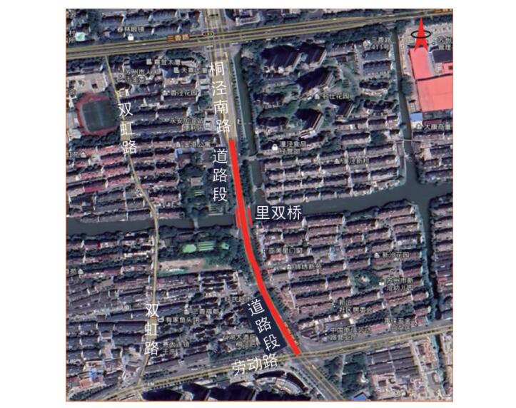 根據《蘇州市綜合交通規劃(2007—2020)》,桐涇路作為“八縱八橫”主干路網中“八縱”中的主要組成部分。擬建項目位于桐涇南路,是周邊小區居民生活、出行的重要通道,也是市區的主要干道。通過對里雙橋進行拆除重建及兩側道路改建,能夠徹底解決老橋存在的安全隱患,保障市民的出行安全。同時通過改建實現雙向六車道,完善城市路網結構,提升路網品質。