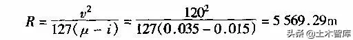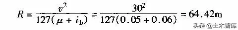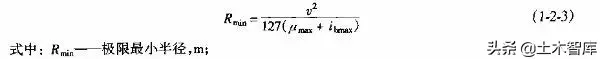由第一章汽車行駛理論,根據汽車行駛在曲線上力的平衡式(1-1-31)可知圓曲線半徑計算公式為