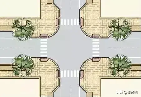 采用較大半徑且渠化拓寬的交叉口,長這個樣子: