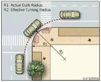 轉彎半徑,在公路設計中是非常重要的一個控制參數,一般考慮安全的需要,是有一個最小值的要求。在城市道路設計中,可能是考慮車輛轉彎過程中車速較低,往往對這個設計參數并不看重,國家規范也沒有明確強制性規定。