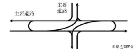 扇形交叉口的適用情形包括:現狀擁堵的主干路—主干路交叉口改造,且交叉口以直行流量為主,左轉流量較小;周邊路網條件好,能在交叉口周圍選出一條現狀路作為連接通道。