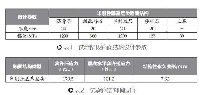 某試驗路為某高速公路中一段半幅路,所在區域地勢平坦、開闊,路線所經區域屬中濕帶大陸性氣候。全線長3km,起訖樁號為K23+100~K26+100,路面寬度為11.5m,路基寬度為13m,路基存在填挖現象,且有一定的縱坡。通過對半剛性組合式基層路面結構、路面材料和施工質量的設計來實現長壽命瀝青路面。