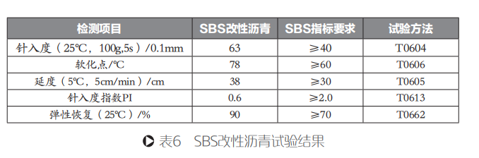 瀝青基層:瀝青基層采用改性瀝青混合料,膠結料采用SBS改性瀝青,礦料級配采用AC-25粗型級配,其SBS改性瀝青技術指標如表6所示。