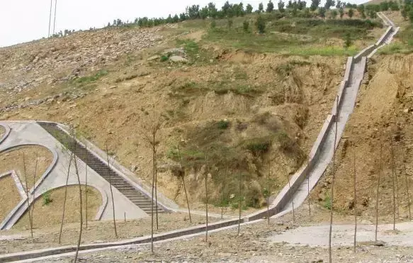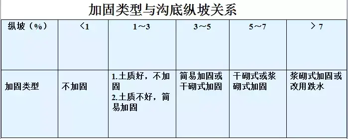 5.急流槽:在陡坡或深溝地段設(shè)置的坡度較陡、水流不離開槽底的溝槽稱作急流槽。急流槽的作用是在較短的距離內(nèi)以溝渠的方式引排水流、降低水頭,進(jìn)而防止沖刷(可用于比跌水更陡的坡度,可達(dá)600)。