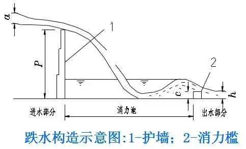 跌水構(gòu)造:?jiǎn)渭?jí)和多級(jí)之分,溝底有等寬與變寬之別。基本構(gòu)造可分為進(jìn)水口、消力池和出水口三個(gè)部分。