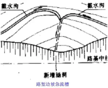 急流槽設(shè)置通常設(shè)置在高路堤邊坡、高路塹邊坡、路塹與高路堤連接處、回頭曲線上下邊溝等位置,是山區(qū)公路溝通上下線路路基排水及溝渠出水口的一種常見排水設(shè)施。