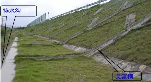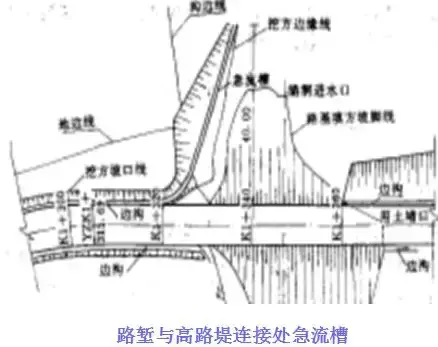 在路堤較高,邊坡坡面在未做防護(hù)而易遭受路面表面水流沖刷,或者坡面雖已采取防護(hù)措施但仍有可能受到?jīng)_刷時(shí),應(yīng)沿路肩外側(cè)邊緣設(shè)置攔水帶,匯集路面表面水,然后通過泄水口和急流槽排離路堤。