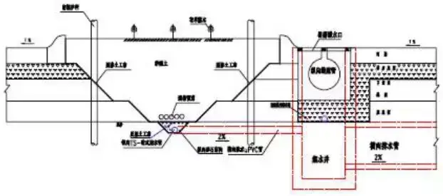 8.滲溝:利用滲透方式匯集流向路基的地下水,并通過溝底通道將水排至指定的地點(diǎn),起到降低地下水位或攔截地下水。