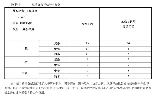 附件1:地質災害評估基本收費