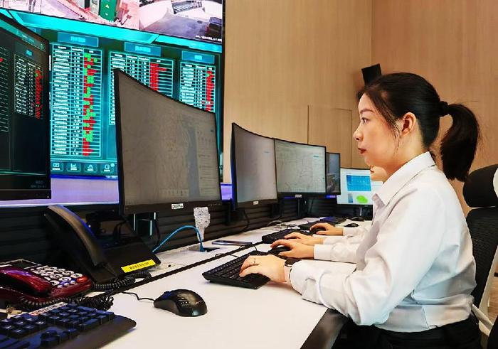 工作人員實(shí)時(shí)監(jiān)管轄區(qū)排水管道、泵站、污水處理廠等運(yùn)行情況。李紅云/攝