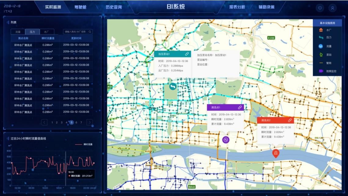 安裝物聯(lián)感知設(shè)備,對(duì)監(jiān)測點(diǎn)數(shù)據(jù)如壓力、流量、水質(zhì)等進(jìn)行實(shí)時(shí)采集、在線監(jiān)測。實(shí)現(xiàn)生成監(jiān)測點(diǎn)歷史監(jiān)測數(shù)據(jù)相關(guān)報(bào)表、趨勢曲線等。