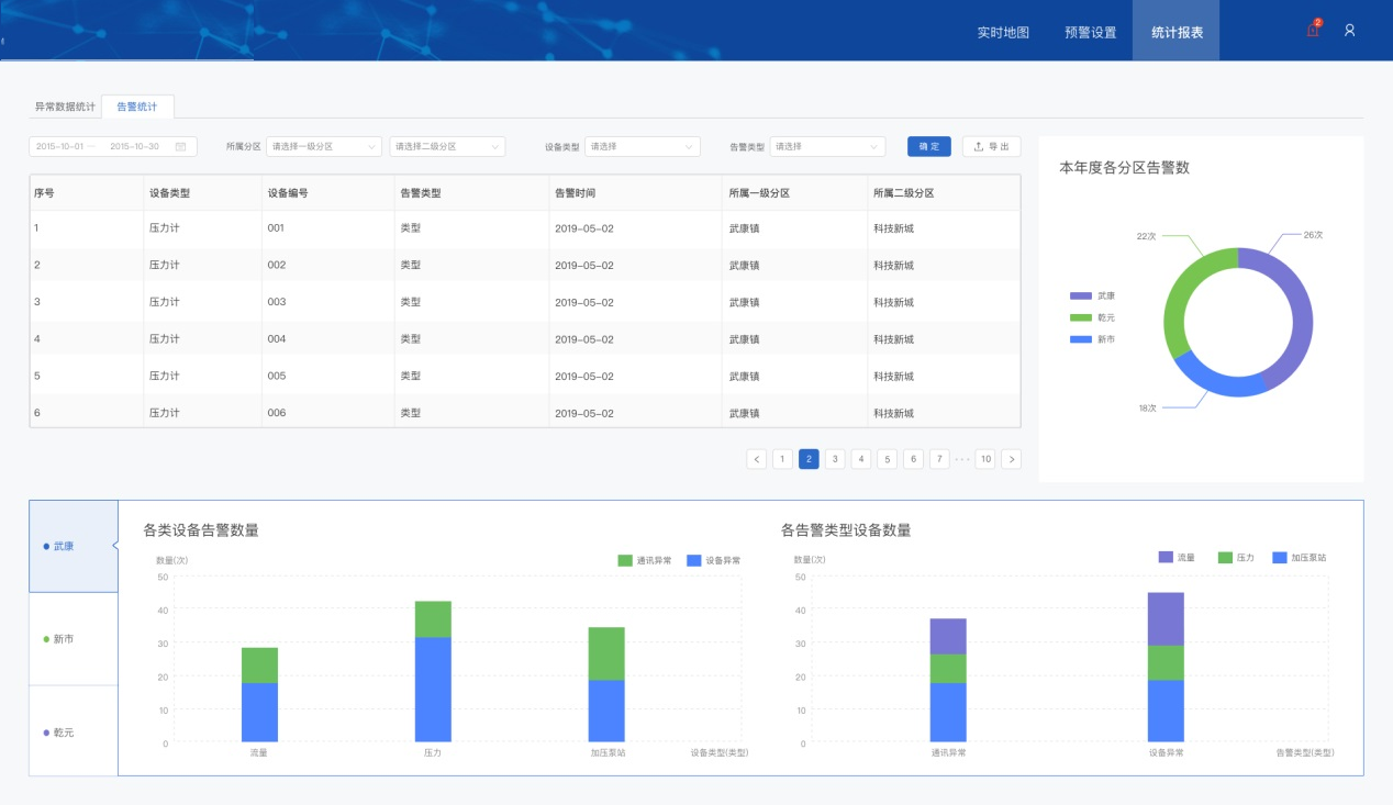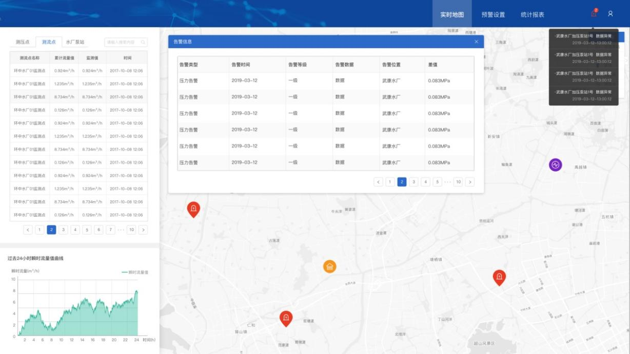 根據(jù)中控采集數(shù)據(jù)如果測壓點(diǎn)低于臨界值,自動(dòng)發(fā)出報(bào)警。