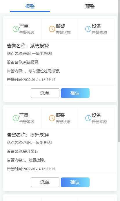 用戶如需發(fā)起工單,進(jìn)入微信小程序進(jìn)行登陸,點(diǎn)擊“發(fā)起工單”即可,工單的任務(wù)由客服指派給運(yùn)維人員,運(yùn)維人員根據(jù)工單描述到現(xiàn)場去解決問題,問題解決的情況反饋給客服。還能發(fā)起巡檢任務(wù),由客服指定給相應(yīng)的運(yùn)維人員去巡檢,運(yùn)維人員也可以主動(dòng)去巡檢。巡檢時(shí)候的隱藏隱患也可以通過報(bào)警模塊體現(xiàn),設(shè)備有傳感器,發(fā)生故障就會(huì)馬上接受到短信提醒。
