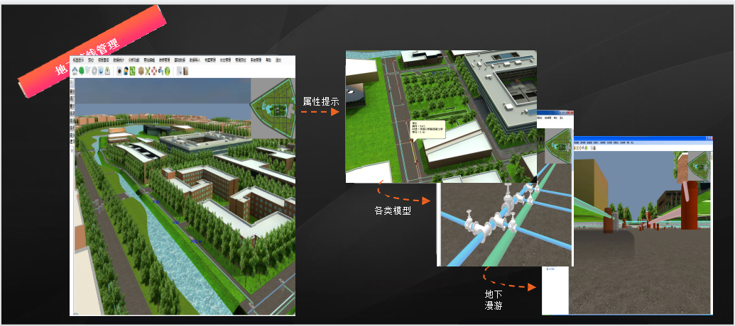 2.實時掌握各種管線的分布以及管理維護進度,避免出現盲目開挖造成管線損失。改善管線維護效率,提高市行政中心南北院規劃管理水平,為市行政中心南北院突發事件提供輔助決策。
