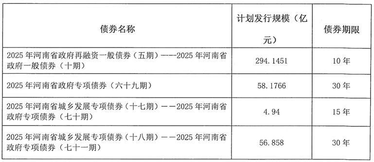 2025年河南省政府一般債券(十期)擬發(fā)行金額294.1451億元,用于償還2018年河南省政府一般債券(六期)、2020年河南省政府再融資一般債券(四期)-2020年河南省政府一般債券(七期)等債券本金。